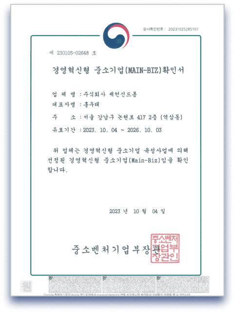 경영혁신기업(메인비즈) 인증