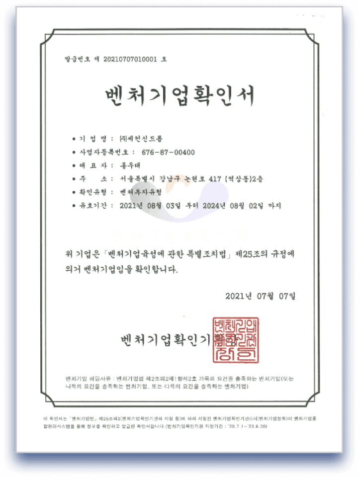 벤처기업 확인서