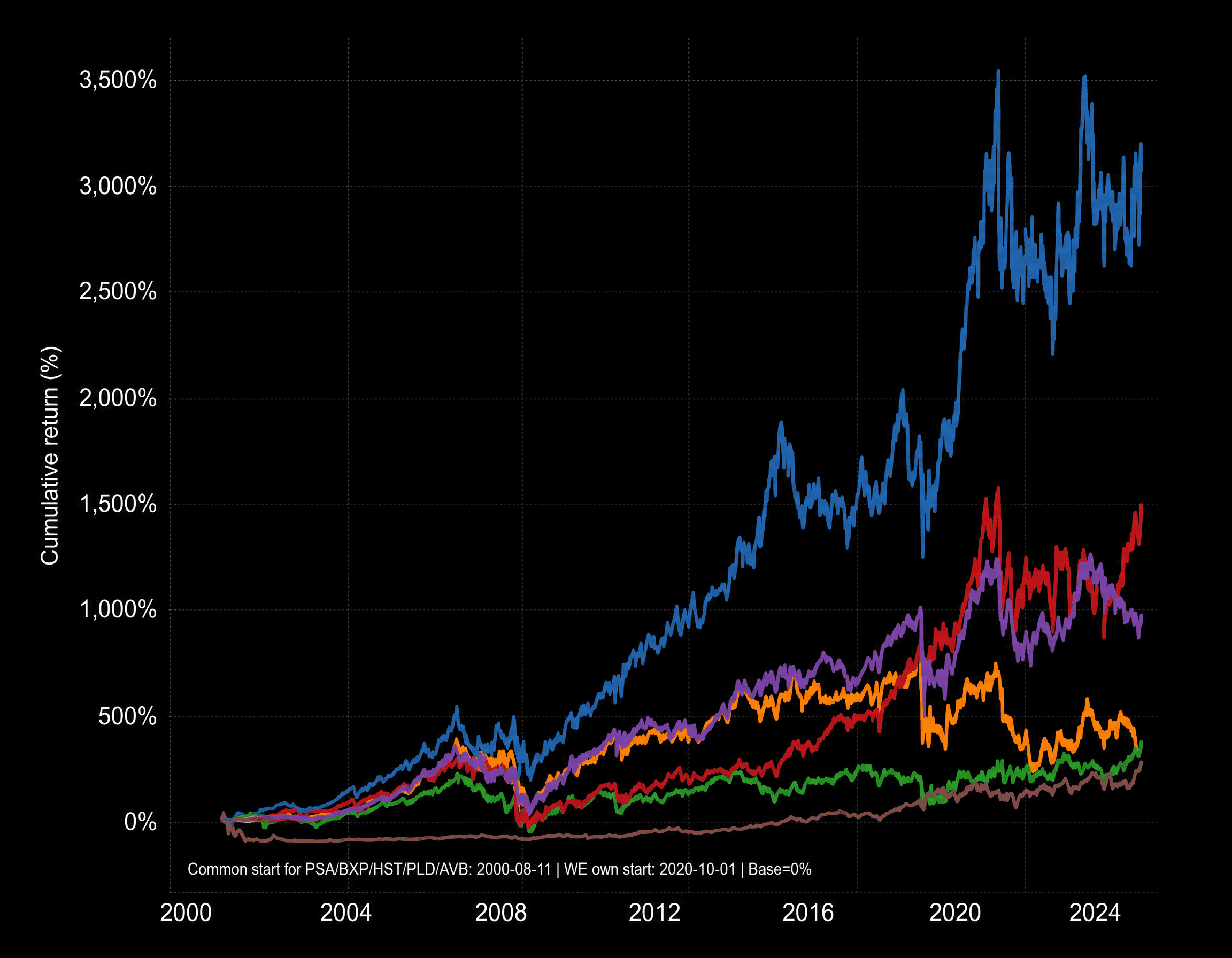 셀프스토리지는 글로벌 부동산 섹터 중 지난 20년간 가장 높은 누적 수익률을 기록한 자산군입니다